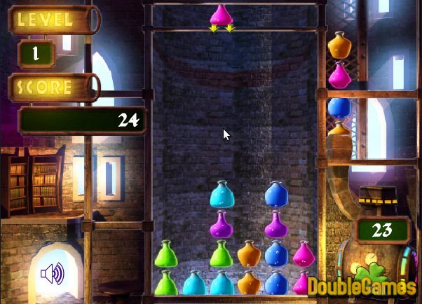 Otidite u misterioznu laboratoriju alhemičara u Alchemy Drop, novoj online Match-3 igrici. Raznobojne flašice u velikom broju pozicija su vaš cilj u ovo igri. Treba da napravite lance koji se sastoje od tri flašice iste boje. Ne dozvolite da ekran zauzmu napitci, u suprotnom igra je završena. Pored toga, ne gubite vreme, zato što flašice padau same, ako prekoračite vremenski limit. Želimo vam puno zabave dok igrate Alhemy Drop online!