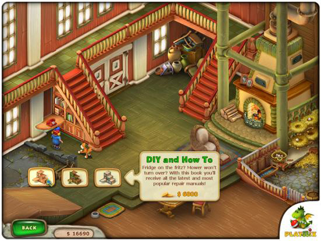 Još jedna veoma zanimljiva karakteristika u ovoj igri pod nazivom Barn Yarn je njena igrivost. To je jedna veoma promišljena mešavina različitih stilova igranja. Na primer, scene sa skrivenim predmetima će se igrati na različitim lokacijama, a vi ćete morati da pronađete sve stavke koje kupci žele, a vi ćete imati određeni vremenski period za koji morate da obavite posao ili će kupci postati nestrpljivi. Na taj način, oni će vam dati manje novca što duže čekaju, a vi ćete imati manje novca za kupovinu. To je element upravljanja vremenom. Ekstra gotovinu možete dobiti ako uspete da pronađete posebne zlatnike u scenama sa skrivenim predmetima. Različiti saveti će vam biti na raspolaganju, kao na primer leptiri koji vam pokazuju put, ili sijalice koje osvetljavaju na kratko potrebne stavke. Da stvari učine zanimljivim, postoje različiti načini koji se aktiviraju tokom igre, recimo da pronađete dvadeset komada istog predmeta ... To je veoma zanimljivo i izazovno! Nakon što završite nivo, vi ćete imati dovoljno novca da kupite različite stvari, koje kasnije možete menjati!