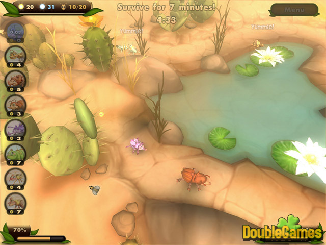 Igrajte novu, svetlu i predivnu igru BugBits! Ovo je lepa igra o smešnim malim stvorenjima - mravima, koji svakog dana moraju da spremaju kuću i hranu! Ali jednoga dana mravi moraju da se bore za dom i hranu! Pomozite ovim zabavnim stvorenjima da zaštite svoje kuće od napadača koristeći razne bubice! Možete besplatno skinuti novu uzbudljivu životinjsku igru BugBits i uživati u zabavnim animacijama, jasnoj grafici i zanimljivom zapletu! Sretno!