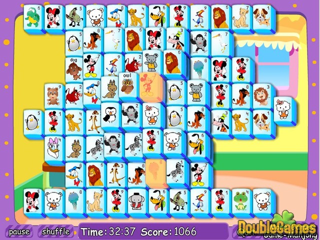 Dobro došli u lagani i raznobojni svet nove online besplatne opuštajuće igrice po nazivu Cartoon Mahjong! Uživajte u klasičnom mahjongu, pravila su ista. Pokušate da pronađete pločice sa identičnim slikama slatkih životina i Diznijevih likova i onda kliknite na njih da bi nestali! Ne gubite vaše vreme i obratite pažnju na pločice koje bi trebale da budu otključane! Cartoon Mahjong je veoma jasna, zabavna i opuštajuća igrica! Počnite da je igrate odmah potpuno besplatno, nećete zažaliti!