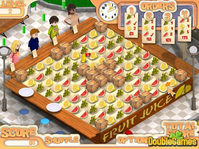 Maria – i je preko glave brze hrane i sode! Zato otvara voćni bar da bi svom gradu ponudila bolji izbor osveženja. Od jednostavnog štanda na ulici do najkul mesta u gradu, narudžbine dolaze brzo dok Vi spajate delove voća u grupe od po tri ili više da biste napravili pića koja traže Vaše mušterije! Prekinite sa navikom jedenja brze hrane danas sa ukusnom i zabavnom igrom sparivanja Juice Mania!