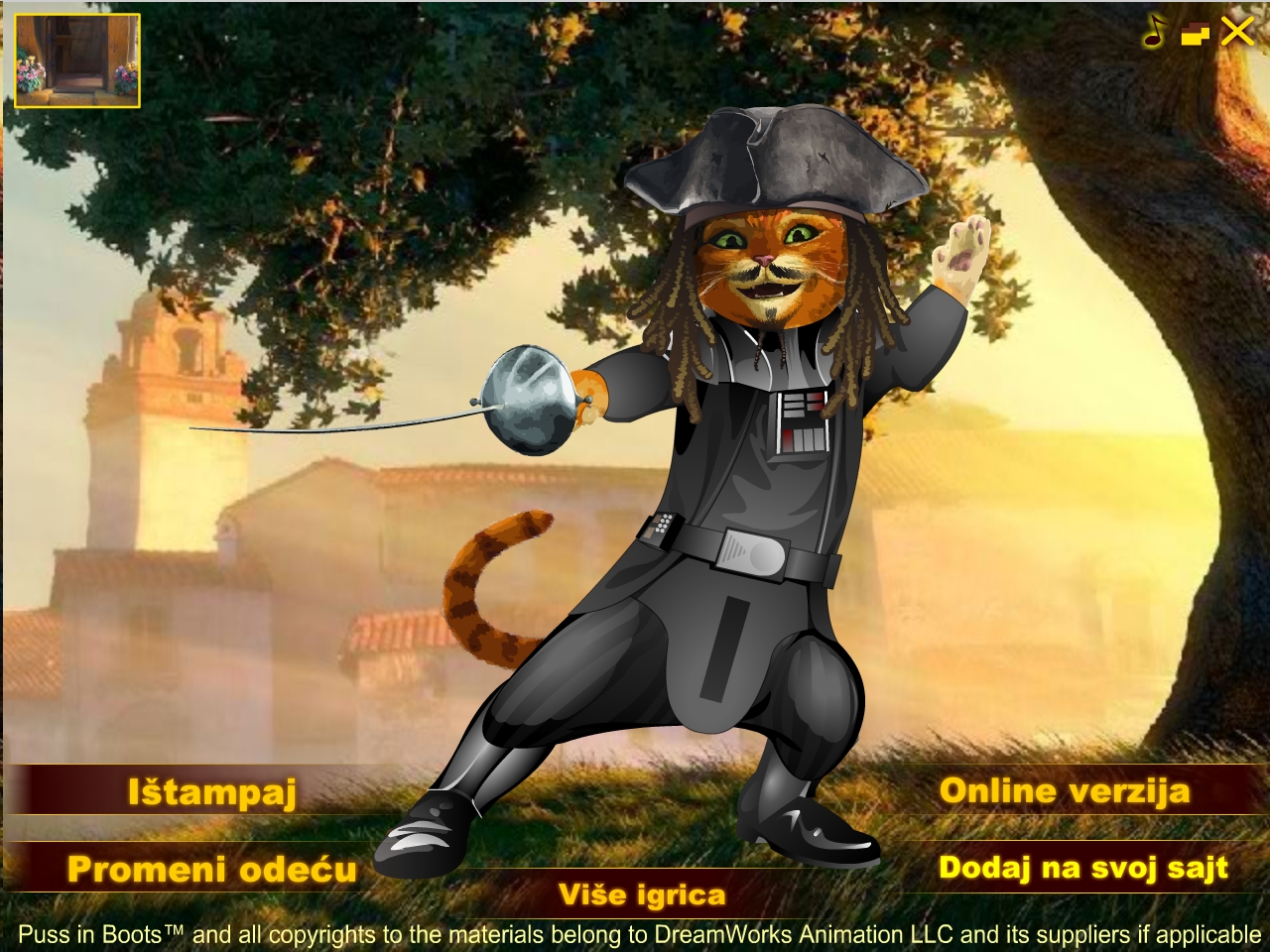 Da li ste ikada videli Mačka koji nosi čizme ili kape? Igrajte našu novu igricu sa smešnim nazivom Puss in Boots: The Dress Up Game i videćete i više od toga! Ova Mačak je pravi mačo, koji voli raznovrsnu garderobu. Pomozite mu da odabere lep par cipela i odelo kako bi osvoio srce jedne mačkice. U igrici po nazivu Puss in Boots: The Dress Up Game, možete da kreirate različite slike ovog mačka i da ištampate one koje vam se najviše sviđaju. Iskopirajte ovu igricu potpuno besplatno i igrajte online da biste se okušali kao lični stilista ovog mačka igrajući ovu slatku igricu!