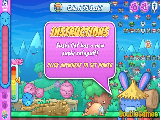 Играјте нови зависност и смешан Аркада и Акција онлине игра Sushi Catapult! Суши Мачка има нови сусхи катапулт и добити прилику да играју са њим превише! Повратак нашег поскакује плаве пријатеља да га види на потпуно новој авантури, са све нове Цатапулт гамеплаи, надамо се да сте упознати са овом врстом игара. Дакле, у овој слободној игри морате да се прикупе суши, онда купи надоградње и одскок свој пут кроз читав нови Сусхи Цат приче! Ова игра ће вам донети много забаве, тако играју већ сада и уживајте.