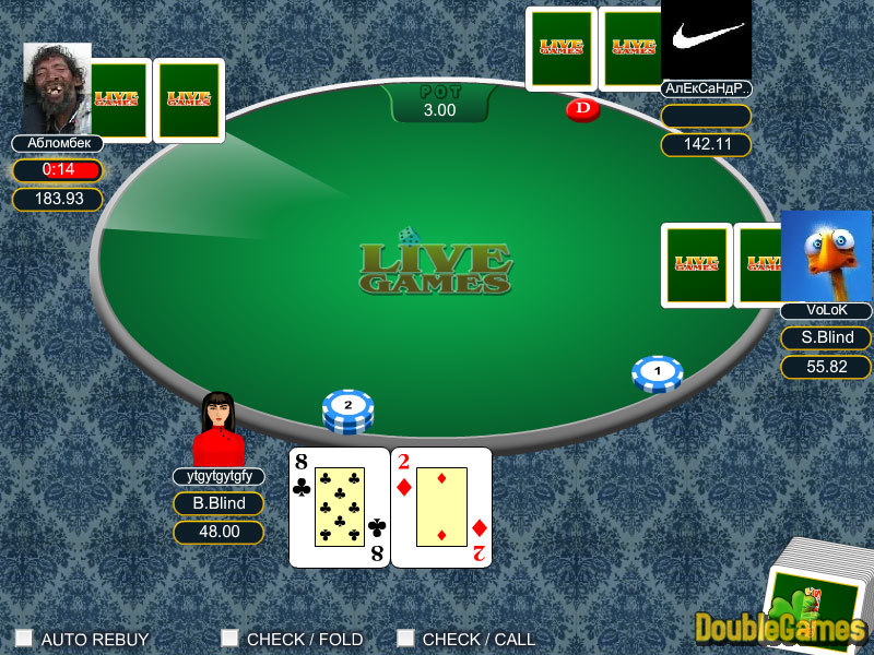Сретни смо да Вас Тексас Холдем Покер, који је најпопуларнија верзија покера у свету, он је играо на готово свим турнира. Главни циљ игре је да се добије покер комбинацију која је виша од противника ". Онлине покер омогућава вам да испробате игру, али запамти: ова игра захтева цео ваш концентрације и картице искуство. Такмичити са осталим играчима и показати оно што можете учинити трикови са картице!