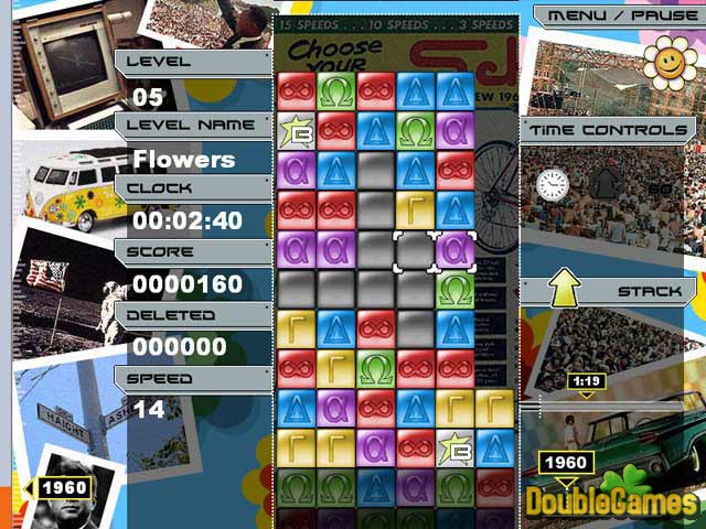 Putujte u prošlost u ovom igri sparivanja i slagalice! Stignite do kraja da biste videli i pričali sa Big Man – om lično! U Time Quest modusu, igrajte od sadašnjice do početka ljudske vrste dok uz put otkrivate i četiri dodatna modusa igre! Otkrijte skrivene nivoe, mogućnosti za varanje, kao i druga iznenađenja! Ovo je zarazna slagalica sa neočekivanim obrtom! Ovo je igra Timeline!